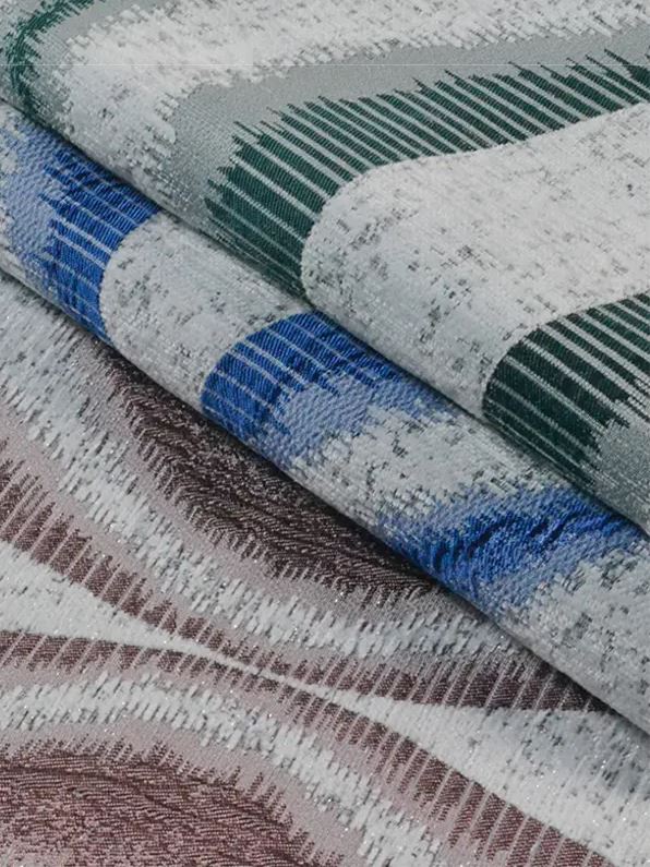 Polyester fabric is known for its sturdy, durable, durable, elastic, and easy to wash and dry characteristics. Polyester jacquard fabric has the advantages of acid and alkali resistance, good wear resistance, and less deformation. In addition, the fabric also exhibits characteristics such as lightness, softness, comfort, and luster. In terms of design, the gradient wave pattern makes the pattern more three-dimensional, as if the sound is vibrating. This design cleverly blends artistic and practical elements, adding a unique aesthetic to the product. This bedding not only emphasizes the high quality of the fabric, but also adds a vivid artistic atmosphere to the bedding through clever changes in wave patterns. It is not only a practical choice in daily life, but also a dazzling choice in bedroom decoration.